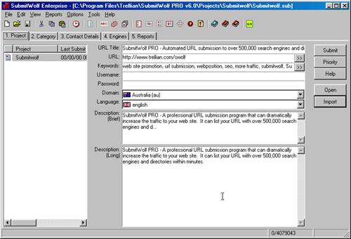 SubmitWolf v6.0 může automaticky registrovat Vaše web stránky do tisícovky vyhledávačů a adresářů plus přes 500 000 seznamu stránek.