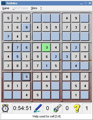V této hře Sudoku si hráč vybírá ze 4 obtížností. Nabízí 6 skinů, nápovědu a zobrazuje čas, který strávíte u řešení. Program má jednoduché uživatelské rozhraní. Je freeware.