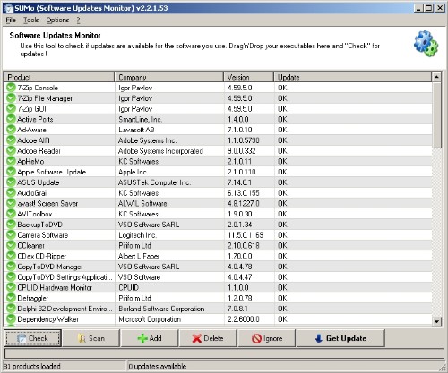 SUMo je výborná utilitka pro aktualizaci vašich programů v počítači. Program prohledá jaký softvér máte nainstalovaný a zjistí, jestli již nevyšly novější verze.