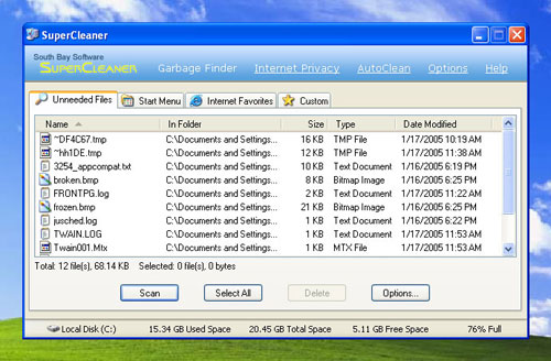 SuperCleaner je čistící program pro váš Windows. Program vyhledává a maže nepotřebné soubory, které ve vašem počítači zabírají místo. Také čistí historii v Internet Exploreru.