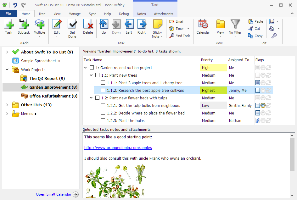 Máte úplnou kontrolu nad Vašima informacema uspořádané v neomezeném hierarchickém stromu. Můžete spravovat všechny druhy úkolů a poznámek , seznamů, cíle, projekty, upomínky, informace, soubory. Užijte si všechny funkce, které by jste mohli někdy potřebovat , včetně jedinečných funkcí, jako dílčí úkoly nebo vytváření úloh z e-mailů (můžete jednoduše přetáhnout do e-mailů Swift To-Do List!)