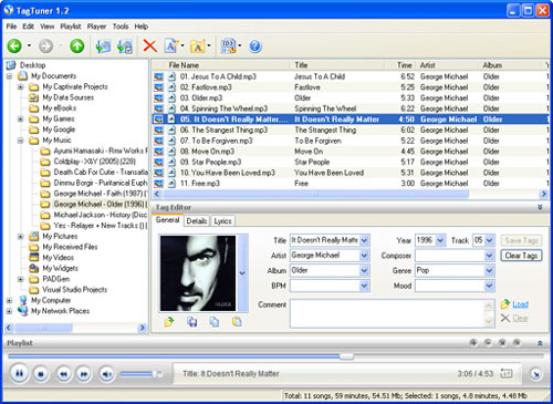 TagTuner je skvělý nástroj pro organizování vaši hudební sbírky a přehrávání multimediálních souborů. Tento program umožňuje snadné a rychlé vyhledávání potřebných souborů, třídění a také spolupracuje s internetovou databází CDDB.
