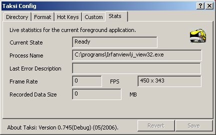 Taksi je jednoduchý nástroj pro tvorbu screenshotů a nahrávání videa z oblíbených her nebo dalších 3D grafických aplikací. Podpora grafických karet: Direct3D 8, Direct3D 9, OpenGL, GDI. Zachycené obrázky program ukládá do formátu PNG nebo 24-bit BMP a videa do AVI užitím VFW kodeků.