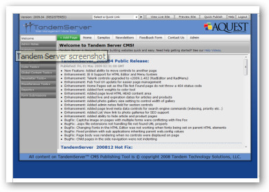 Tandem Server je volně šiřitelná aplikace, která umožňuje snadnou aktualizaci a obměnu obsahu webového serveru. Mezi hlavní znaky aplikace patří jednoduché ovládání a snadná instalace. Program je možné zprovoznit ve třech krocích: