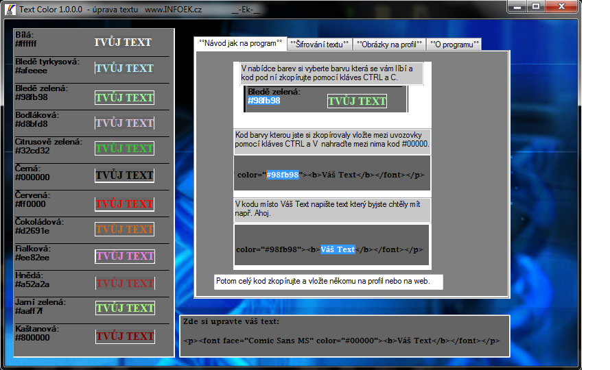 Program Text Color slouží k úpravě barev textu na profil lide.cz.