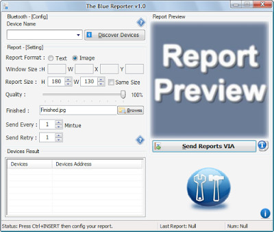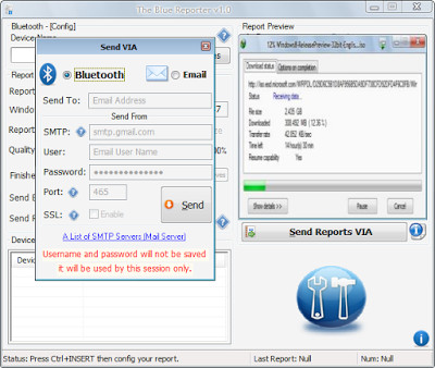 The Blue Reporter je software, který vás informuje o dokončení procesů na vašem počítači. Můžete jej použít k sledování stahování souborů, antivirových kontrol nebo defragmentace disku. Jakmile proces dokončí, The Blue Reporter odešle informační zprávu (nebo obrázek) prostřednictvím Bluetooth na vaše mobilní zařízení, tablet nebo jiný počítač. Můžete si také vybrat, aby vám program poslal upozornění e-mailem.