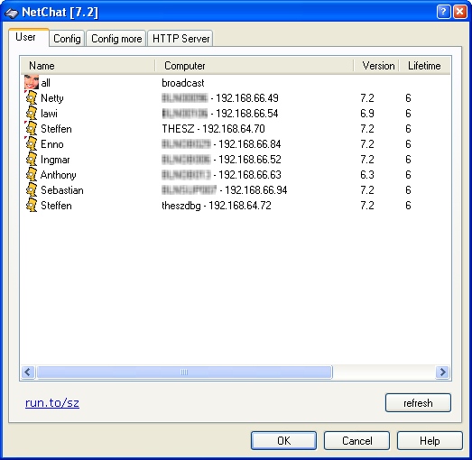 Netchat je program, který po spuštění vytvoří ikonu vedle hodin na hlavním panelu. S Netchatem můžete chatovat nebo posílat soubory. Můžete si vytvořit pevného uživatele, který může být rovněž v jiné podsíti. Tito uživatelé mohou být nakonfigurovaní v bráně, která bude spojující pro oba NetChaty v podsíti. Pro uživatele, kteří jsou v současné době v režimu offline, může být zpráva uložena na ftp serveru.