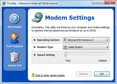 Throttle je jednoduchá utilitka, která vám umožňuje rychlé internetové připojení, práci s internetem a stahování, např.: huda, firmy, hry atd. Program je kompatibilní se všemi verzemi Windows a se všemi typy připojení na internet.