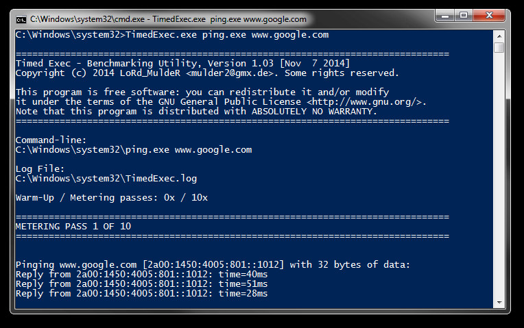 TimedExec je malý nástroj pro testování rychlosti programů příkazových řádků. Spustí program se zadanými argumenty a změří čas, který je potřeba k jeho dokončení. Aby bylo dosaženo přesných výsledků, používá TimedExec časovač s vysokým rozlišením a program spustí několikrát. Výsledkem je průměrná doba ze všech měření.