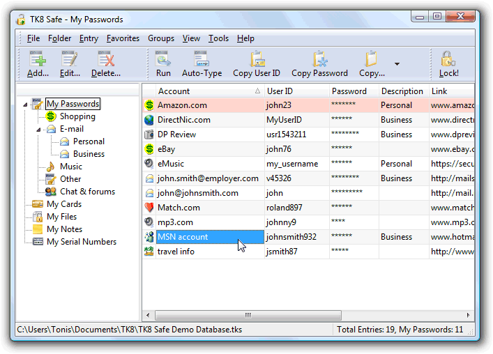 TK8 Safe - je to jednoduchý a bezpečný správce hesel, který bude spolehlivě pamatovat vaše hesla. Pokud vám záleží na vašich citlivých informací, tento program je ten, který udrží tajemství! Do tohoto programu můžete ukládat všechny vaše uživatelská jména a hesla, poznámky a sériová čísla. Soubor s těmito údaji je šifrován a tím pádem není k dispozici ostatním uživatelům.