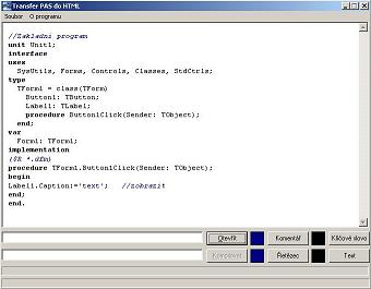Transfer PAS do HTML převádí zdrojový kód paskalu do HTML. Má jednoduché ovládání, neinstaluje se.