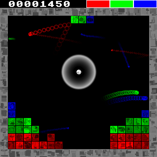 Pomocí myši ovládáte bílou kuličku, což je jakýsi kurzor, kterým plácáte do povrchu herní plochy, čímž měníte směr míčků podle toho, jak je který míček blízko středu plácnutí. Je-li míček poblíž plácnutí, ztratí trochu své energie. Vy tedy musíte směrovat míčky tak, aby narážením do barevných kostek vysávaly jejich barvy, čímž si doplňují svou energii.