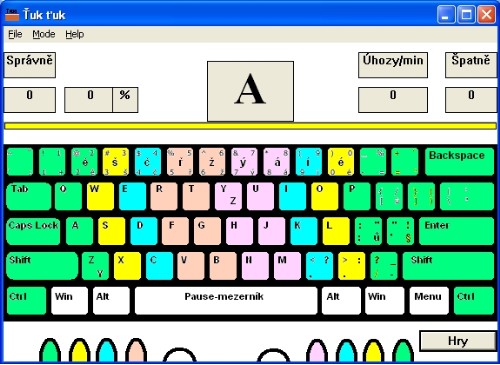 Ťuk-ťuk je přehedný výukový nástroj pro psaní na stroji všemi deseti prsty. Program zobrazuje počet úhozů za minutu, chyb atd.