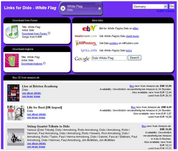 • Zobrazuje informace o skladbě, jako je název, umělec, album, rok vydání a další