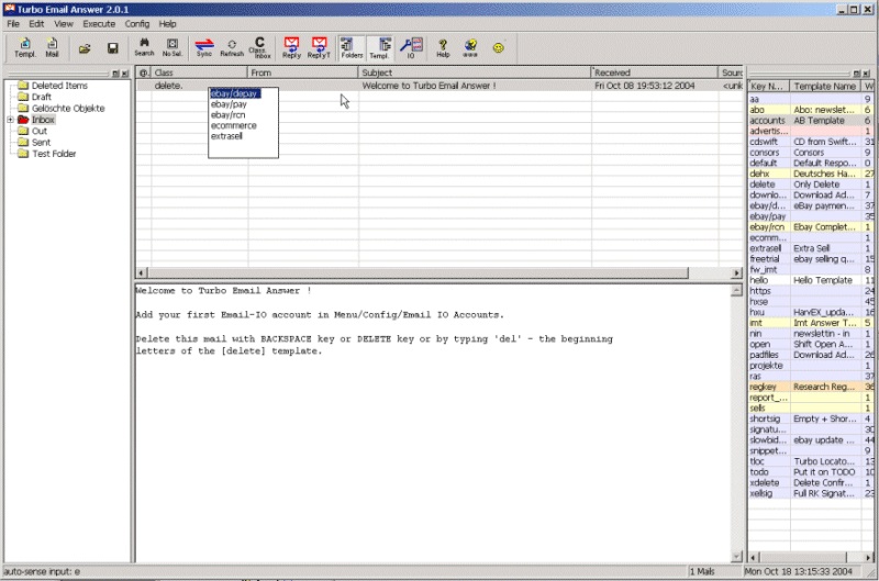 Turbo Email Answer je přední software pro efektivní a interaktivní automatické odpovídání na e-maily, díky inteligentním textovým šablonám. Snadno se integruje do běžného e-mailového klienta. Obsahuje všestranné možnosti makro automatizace (vestavěný skript v jazyce Python).
