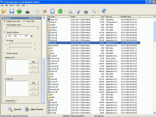 TS Network Edition je založen na úspěšném vyhledávači TS Standard Version. Jeho předností je rychlost s jakou umí vyhledat požadovaná data. NE verze je určena pro vyhledávání v LAN - můžete určit jméno počítače, IP adresu vzdáleného PC nebo rozsah IP adres, na kterých se má hledat. Program nabízí správu přístupových práv pro případ, že jsou počítače chráněny hesly.