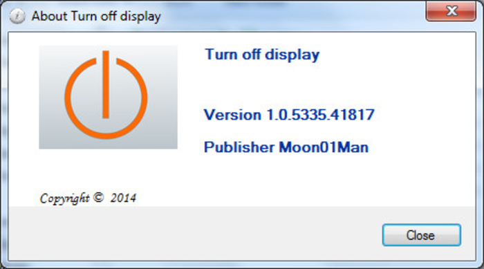 Turn off display je aplikace, která umožňuje dočasné vypnutí monitoru. Využívá se hlavně u notebooků z důvodu ochrany soukromí při nepřítomnosti a také pro úsporu energie. Do aktivního stavu lze obrazovku vrátit gestem myši nebo klávesou. V případě režimu uzamknutí je po spuštění vyžadováno heslo.