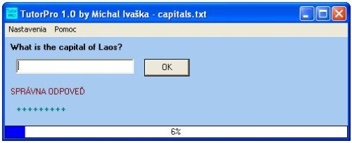 Program testuje vědomosti, a to způsobem, že odpovídáte na určité otázky, např. hlavní města, slovíčka cizího jazyka, chem. značky prvků atd. Charakteristika programu: