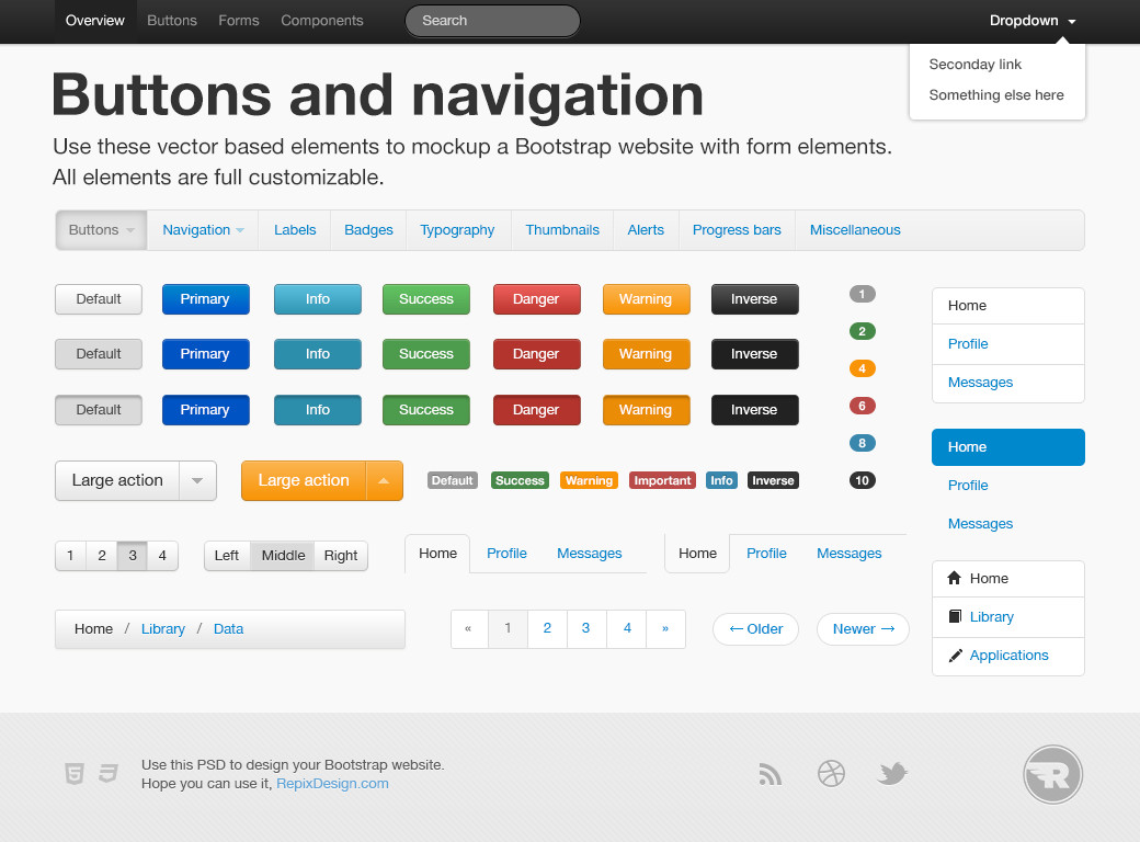 • Sada komponent pro tlačítka, navigaci, formuláře a další prvky