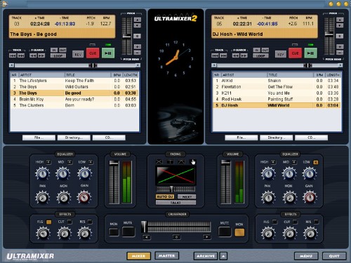 UltraMixer je kvalitní nástroj pro mixování hudby v různých formátech: MP3, WMA, OGG, WAV nebo CD. Vše, co potřebujete je jen zvuková karta. Program zobrazuje dva digitální přehrávače, pomocí kterých libovolně mixujete a upravujete hudbu.