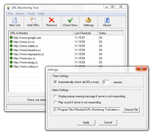 URL Monitoring Tool je utilita, který vám pomůže sledovat funkčnost vašich webových stránek. Můžete s ním sledovat dostupnost svých stránek, rychlost jejich načítání a obsah. Pokud se na vašich stránkách objeví nějaký problém, budete o něm okamžitě informováni.