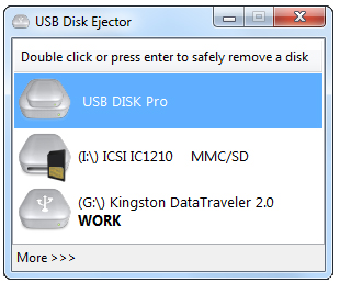 USB Disk Ejector je praktický program, který umožňuje rychle a snadno odpojit USB zařízení ve Windows. Původně byl určen k odstranění pouze USB flash disků, ale nyní odpojí i ostatní USB zařízení. Usnadní tak správu připojení vyměnitelných disků bez klasických otravných bublin s textem. Program je zcela zdarma!