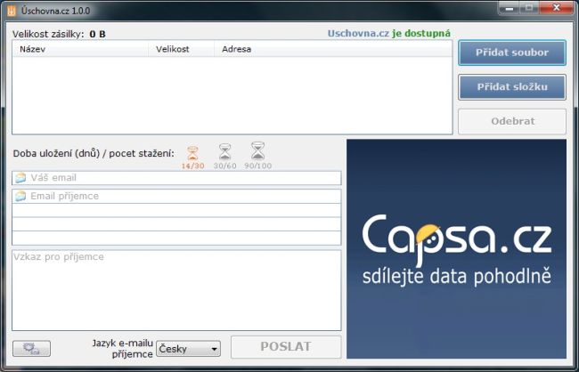 Úschovna nabízí snadný způsob zaslání Vašich dat, a to až do velikosti 300 MB úplně zdarma! Stačí zde Vaši zásilku uložit a Vámi zadaní adresáti obdrží e-mail s návodem, jak si ji po dobu 14ti dnů mohou až 30x stáhnout. Data zaslaná přes Úschovnu jsou doručena rychle, bezpečně a diskrétně pouze těm, které si zvolíte.