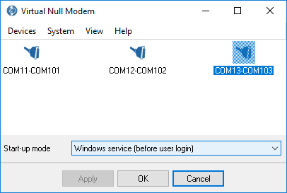 Pomocí Virtual Null Modem můžete vytvořit libovolný počet virtuálních sériových portů ve vašem systému (COM10, COM11, COM127 atd.), které budou vzájemně propojeny prostřednictvím virtuálního null-modem kabelu.