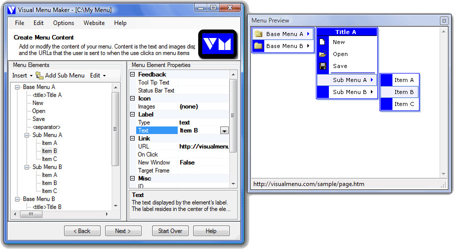 Visual Menu Maker je nástroj pro snadnou a rychlou tvorbu rozbalovacích menu. Pomocí něj můžete vytvořit menu libovolného tvaru a velikosti, s libovolným množstvím položek.