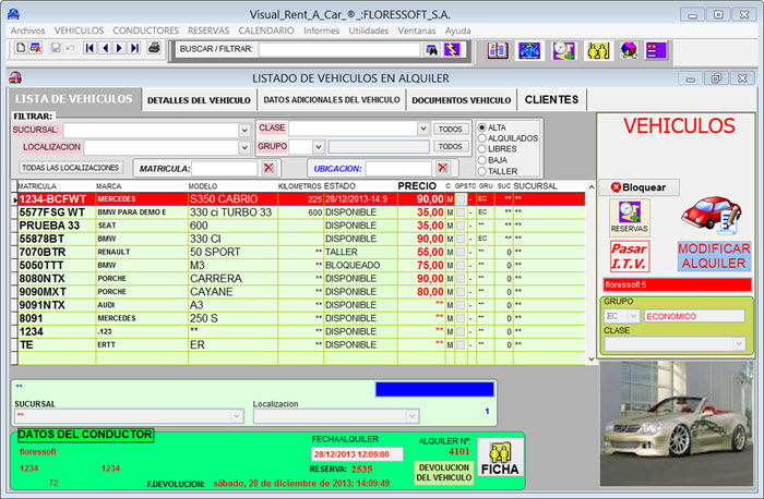 Visual Rent Car je program, se kterým máte přehled o pronájmu vozidla. Software Enterprise Rent a car, půjčovna vozidel. Klasifikace vozidel v různých kategoriích, automobilů, motocyklů, člunů, ... uživatelsky konfigurovatelné. Jednoduché a intuitivní software, který se přizpůsobí vašim potřebám. Kontrola dokumentů pro zákazníky i vozidel.