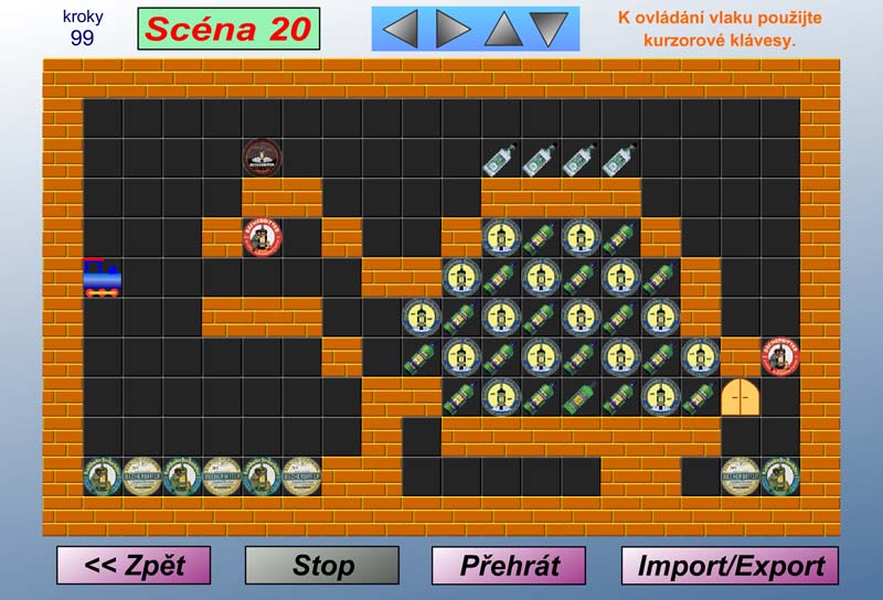 Vlak - logická hra typu Had. Procvičuje přesnost, postřeh, kombinační a logické myšlení. Cílem hry je posbírat všechny předměty ve scéně a projet branou. Ve hře je 50 scén.