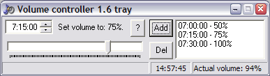 Pomocí tohoto prográmku můžete nastavovat hlasitost PC (master volume) podle vámi zvoleného času . Lze tak nastavit, aby se zvuk na počítači ve stanovenou chvíli zesílil, např. u buzení rádiem nebo ztlumil - při usínání.