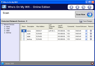 Tato aplikace umožňuje zkontrolovat seznam připojených zařízení v síti a označit ty, kteří patří k oprávněným uživatelům. Za účelem kontroly nových připojení, program běží na pozadí a opakuje skenování sítě každých pár minut.