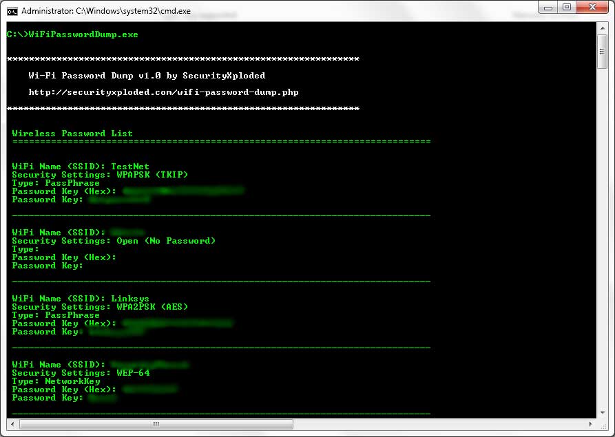 WiFi Password Dump je nástroj v příkazovém řádku, pro rychlé obnovení bezdrátových hesel uložených ve vašem systému.