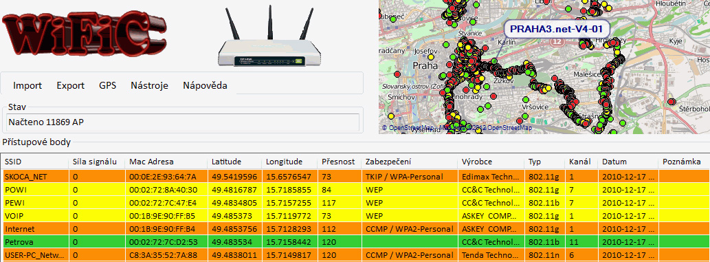 WiFiC je jednoduchý program pro automatické sledování a tvorbu interaktivních map WiFi sítí bez potřeby GPS zařízení.