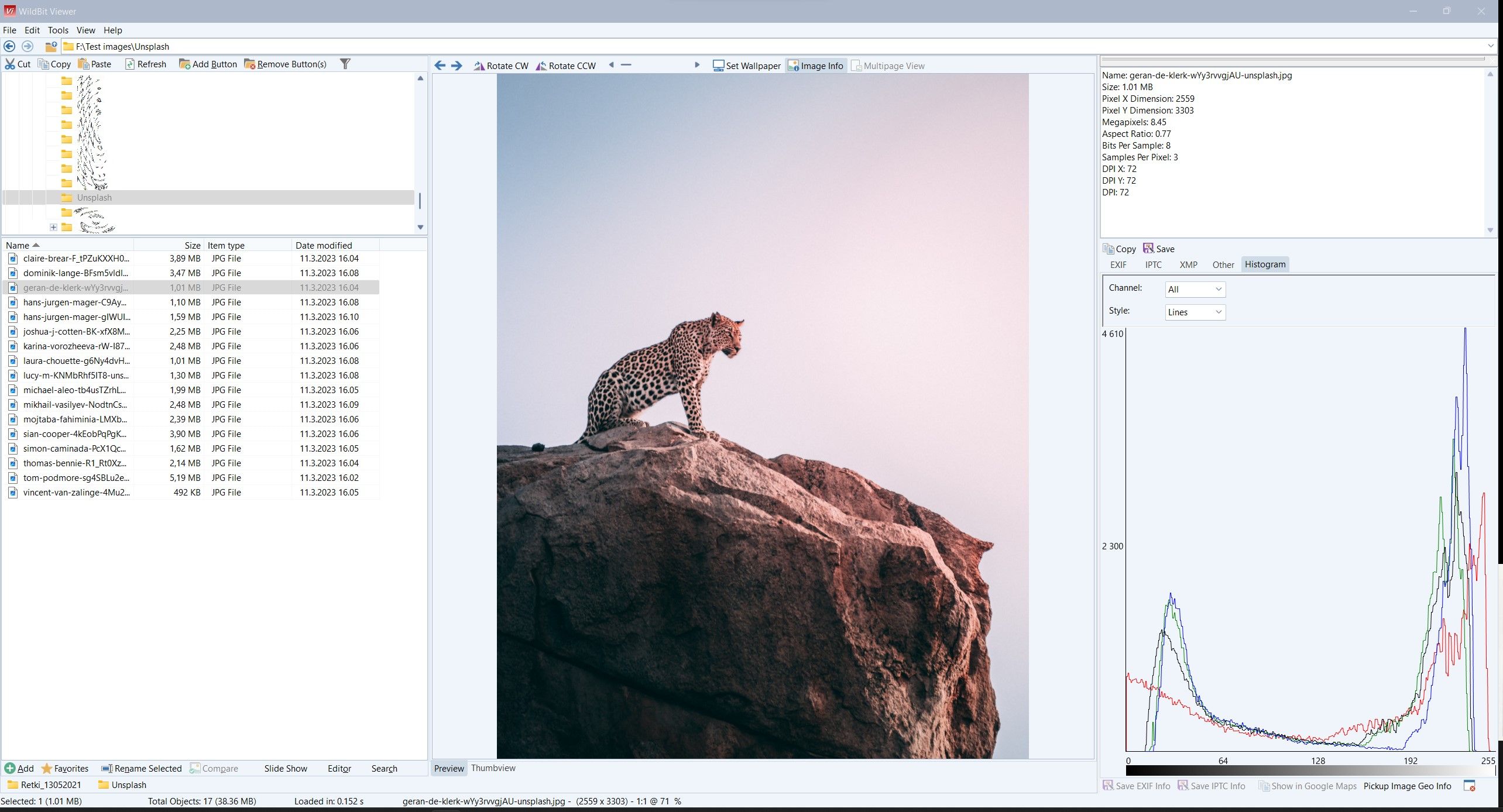 WildBit Viewer je rychlý prohlížeč obrázků s editorem pro slideshow. Obsahuje více než 176 různých přechodových efektů a podporuje více než 70 grafických formátů včetně BMP, JPEG 2000, JPEG, GIF, PNG, PCX, TIFF, WMF, TGA atd. U digitálních fotografií zobrazuje EXIF informace. Jednoduché uživatelské prostředí, práce s adresáři a soubory a využití prohlížeče jako organizér fotografií.