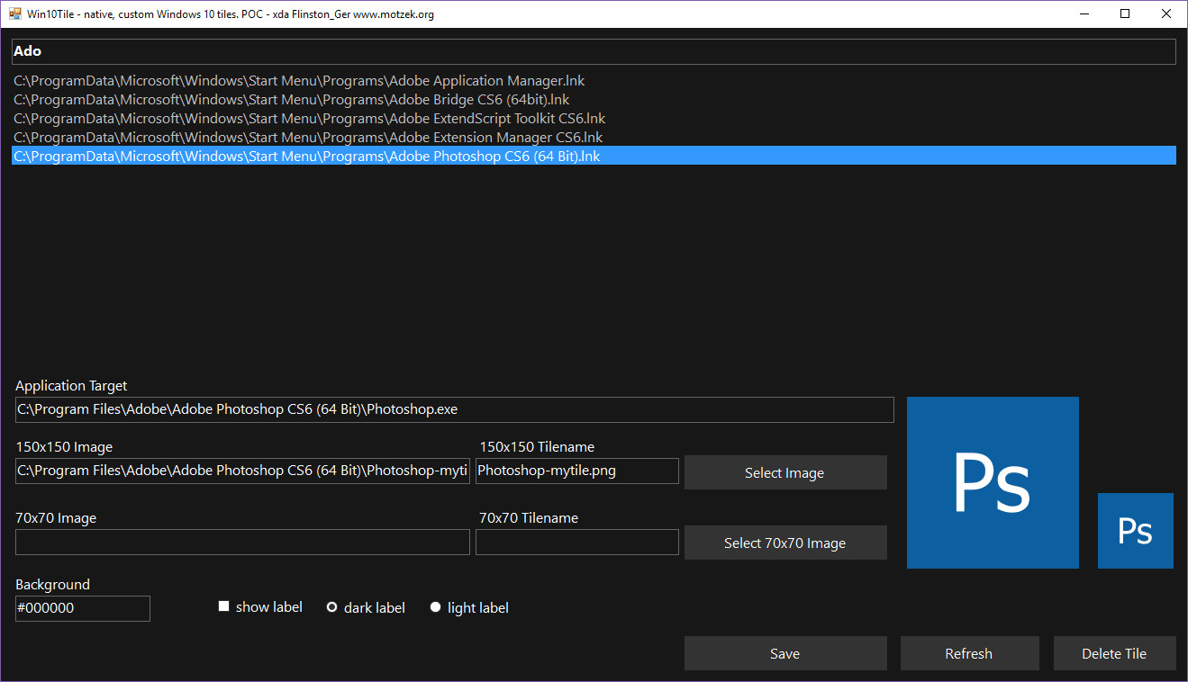 2. Spusťte Win10Tile a vyberte aplikaci, kterou chcete upravit.