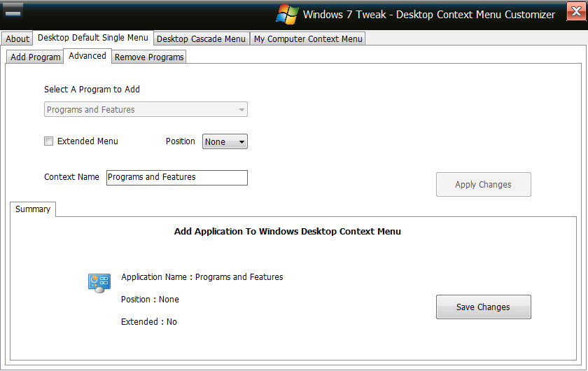 S programem Windows 7 Tweaks - Desktop Context Menu Customizer si můžete kontextovou nabídku pracovní plochy přizpůsobit podle vlastních představ. Program je jednoduchý a snadno se používá, a umožňuje vám přidávat zástupce do kontextové nabídky, měnit její umístění a mnoho dalšího. Program lze také použít k vytvoření vlastní nabídky ke spouštění programů, která nahradí nabídku Start. Veškeré změny by neměly narušit chod systému, přesto je doporučeno vytvořit si zálohu systému před provedením jakýchkoli změn.