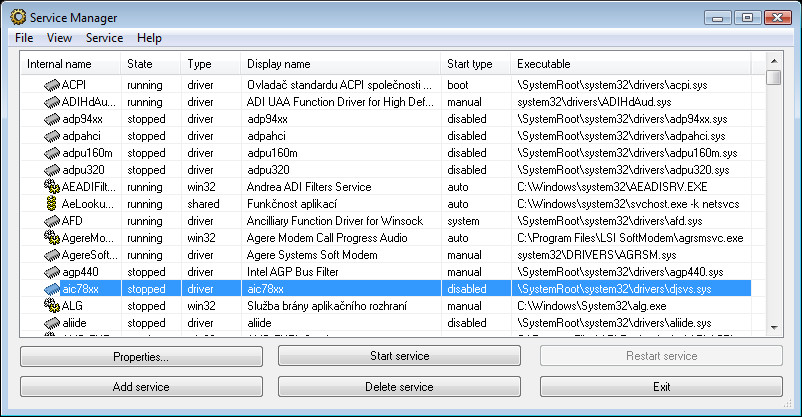• Vytvářejte a odstraňujte služby bez nutnosti restartovat počítač.