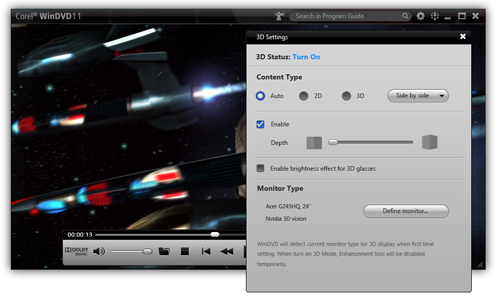 Corel® WinDVD® Pro 11 je software pro přehrávání 2D a Blu-ray 3D™, který podporuje přehrávání disků Blu-ray 3D™, AVCHD™ a DVD a také všech nejnovějších formátů videa. WinDVD je díky více než 250 milionům prodaných kopií jedním z nejuznávanějších produktů. Verze Pro je doslova nabita řadou funkcí, mimo jiné technologií 3D zobrazování, převodem 2D na 3D, převodem na rozlišení HD a špičkovým zvukem!