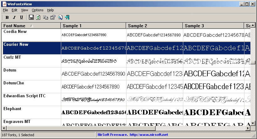 WinFontsView je snadno použitelná aplikace, která Vám zobrazí seznam veškerého písma nainstalovaného ve Vašem systému a zobrazuje je v jedné jednoduché tabulce. WinFontsView vykreslí až 5 vzorků každého typu písma v různých velikostech, aby bylo možné snadno najít a vybrat požadované písmo, které potřebujete. WinFontsView také umožňuje zobrazit písma jako Bold, kurzíva nebo podtržení Podporuje také export seznamu fontů do HTML souboru.