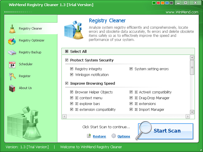 WinMend Registry Cleaner je silný a bezpečný čistič registru a optimalizační nástroj. Nabízí tyto čtyři hlavní funkce:
