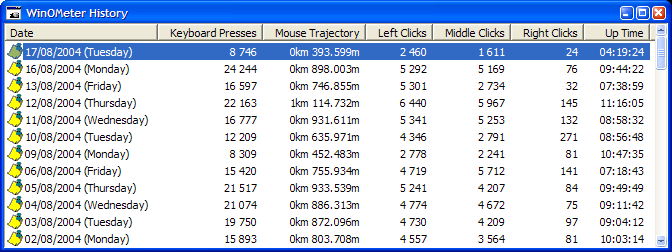 Údaje o každém dni jsou uložené v historii, takže si můžete vytvářet své statistiky práce s počítačem.