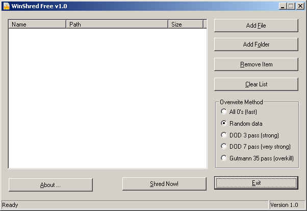 WinShred je schopen smazanou stopu přepsat až pěti různými metodami.