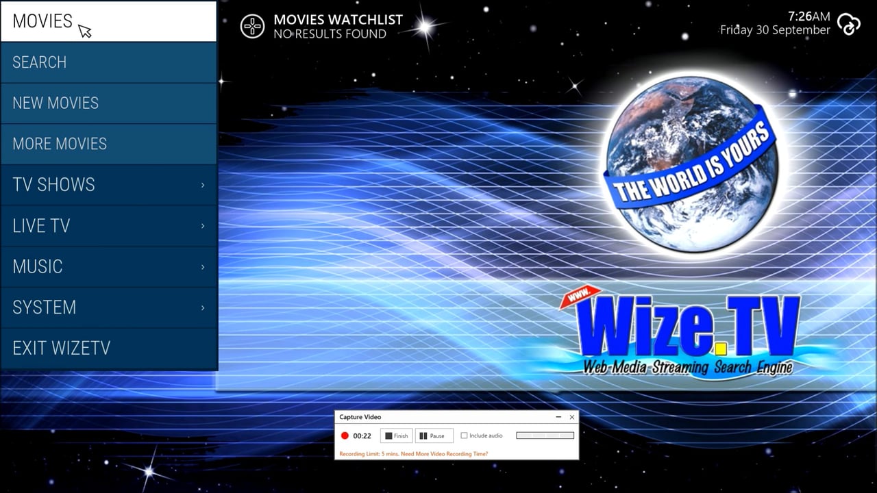WizeTV umožňuje sledování filmů, televizních pořadů, či poslouchání hudby. Hlavní okno se dělí na čtyři části na základě streamovaného obsahu. Program umožňuje vyhledávání jak titulků, tak i filmů podle názvu nebo různých filtrů (např. žánr).