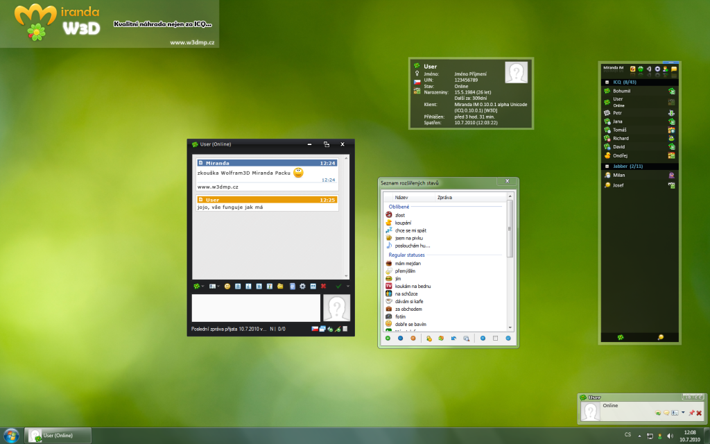 Dále Vám tento pack předvede Mirandu IM v plné síle, jelikož se jedná o multi-protokolovou Mirandu, takže můžete pro všechny své využívané komunikační protokoly využívat jediný komunikátor. Komunikační protokoly je možné téměř za chodu přidávat, takže již nemusíte ztrácet čas se složitou konfigurací. Mezi další plus patří malé zatížení procesoru a lepší bezpečnost programu.