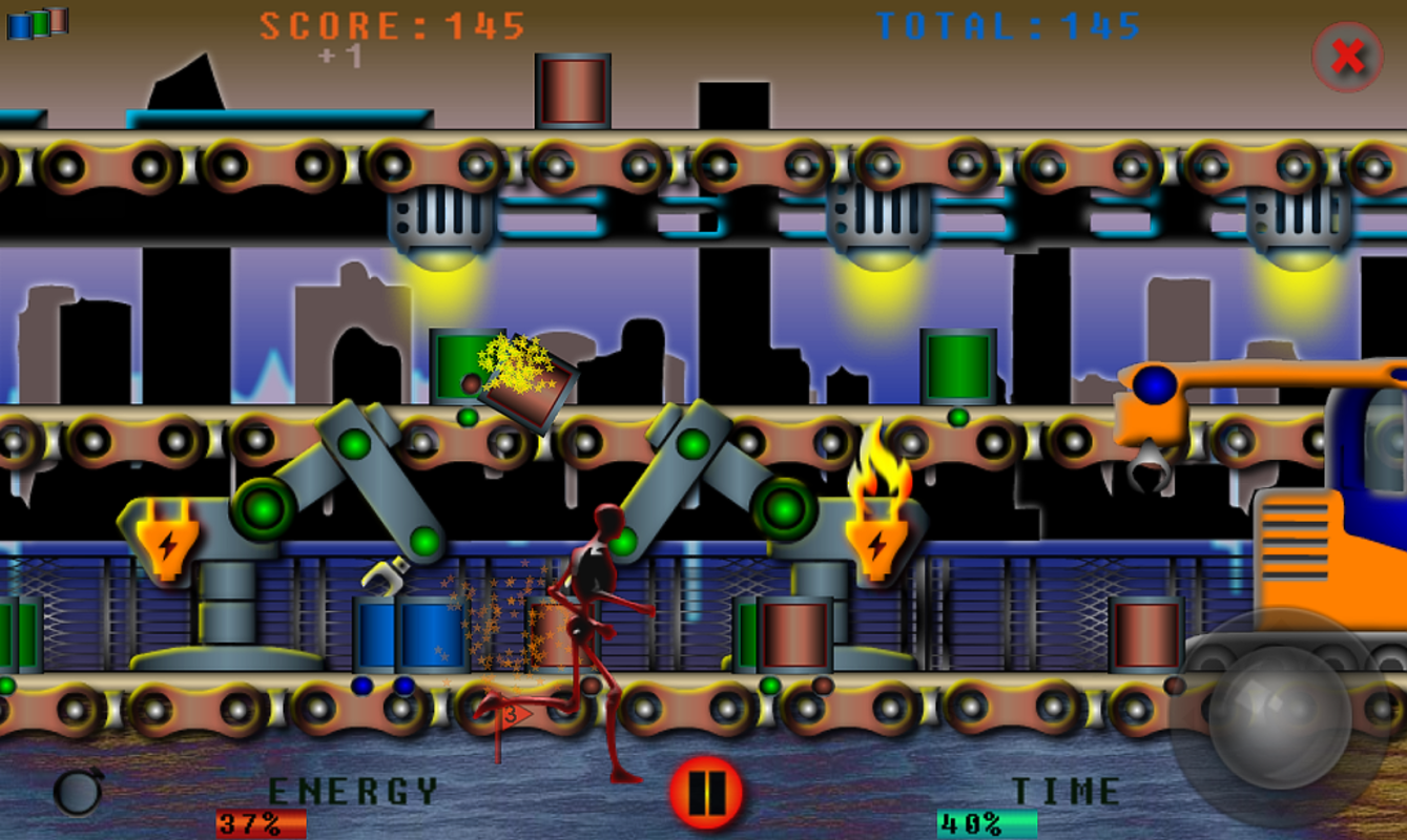 Originální logická hra v cyberpunkovém světě. Pravidla jsou jednoduchá. Vezměte časovač (DOLU), umístěte ho na box (NAHORU). Po 3 sekundách odpočítávání vyjede krabice o jedno patro nahoru. Pokud je časovač na krabici aktivní, a pokud se setká s boxem nad ním a je stejné barvy, vyjde na dalšího patra nahoru. Ukončení červeného boxu je za 15 bodů, ukončení zeleného boxu za 10 bodů, modrého za 5 bodů. Čím dál od místa umístíte časovač, tím více bodů obdržíte. Body jsou také za 2 boxy najednou. V každém kole je potřeba udělat určitý počet bodů v daném čase.