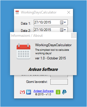 WorkingDaysCalculator je pomocný nástroj, který vypočítá pracovní dny mezi dvěma datumy zadanými uživatelem. Je možno nastavit počet pracovních dní za jeden týden. Jakmile se výpočet dokončí, zobrazí se celkový počet dnů.