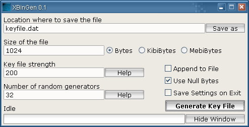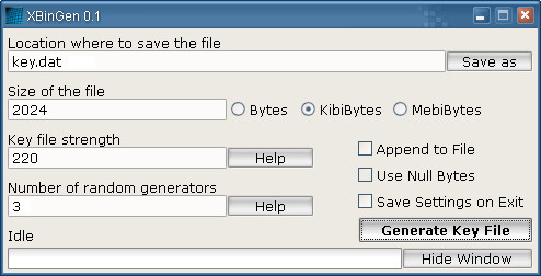 XbinGen je nástroj pro generování binárních klíčových souborů určených k šifrování dat. Vytváří soubory obsahující binární informace, které jsou pro běžné editory nečitelné.