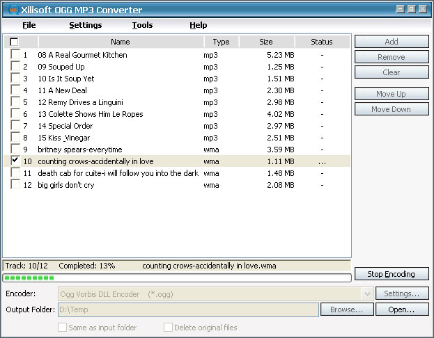 OGG MP3 Converter nabízí profesionální konvertování mezi formáty OGG a MP3. Podporuje také konvertování mezi populárními audio formáty WMA a WAV.